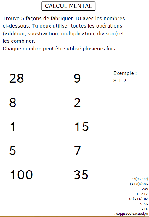 exercices calcul mental enfants